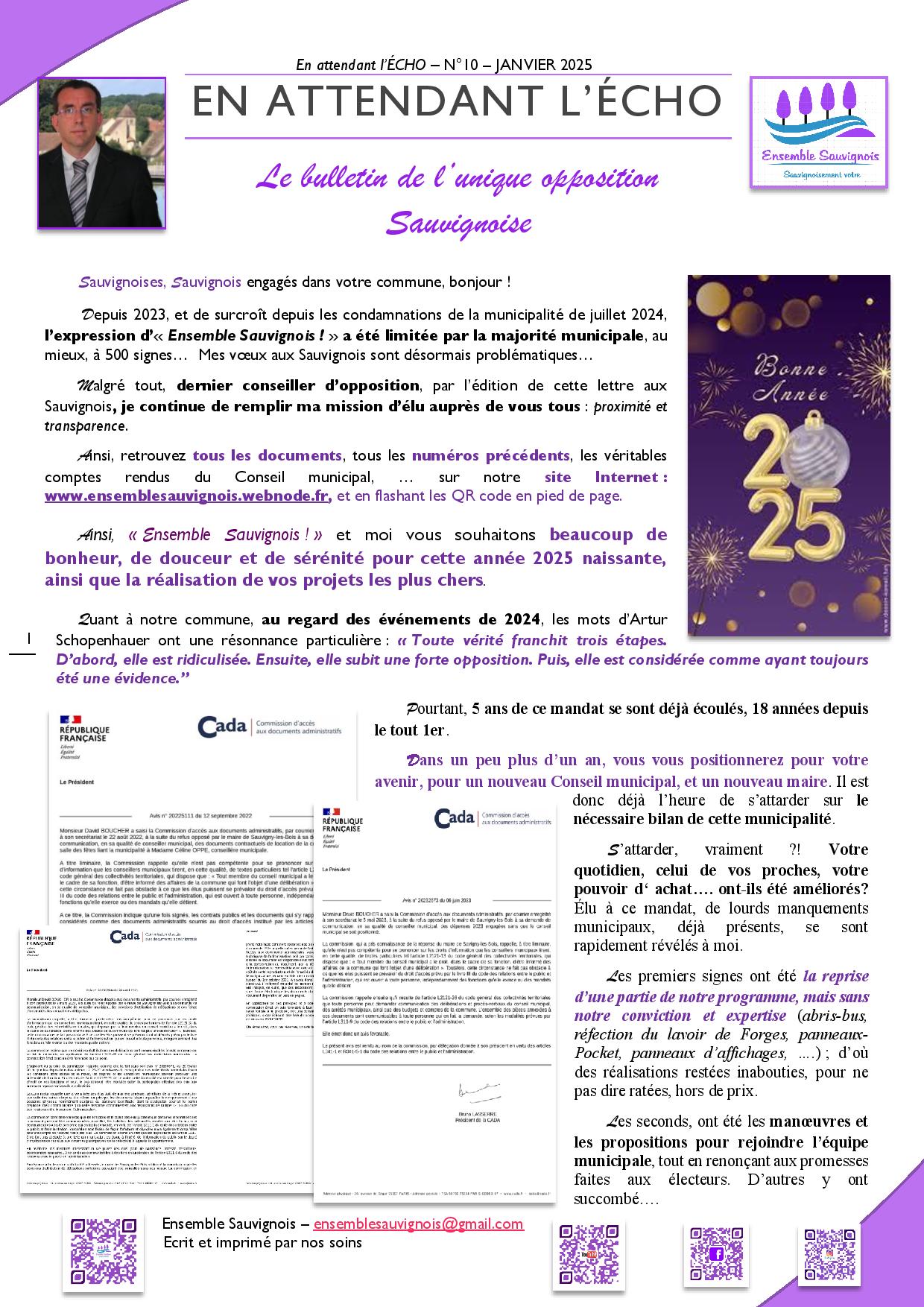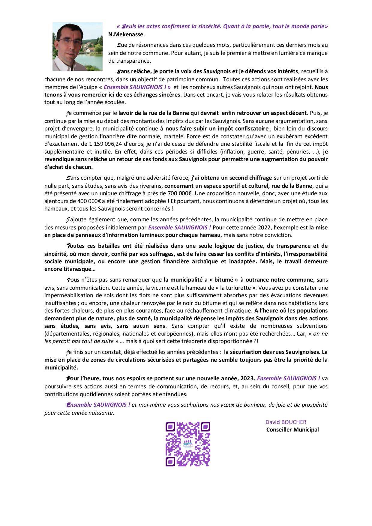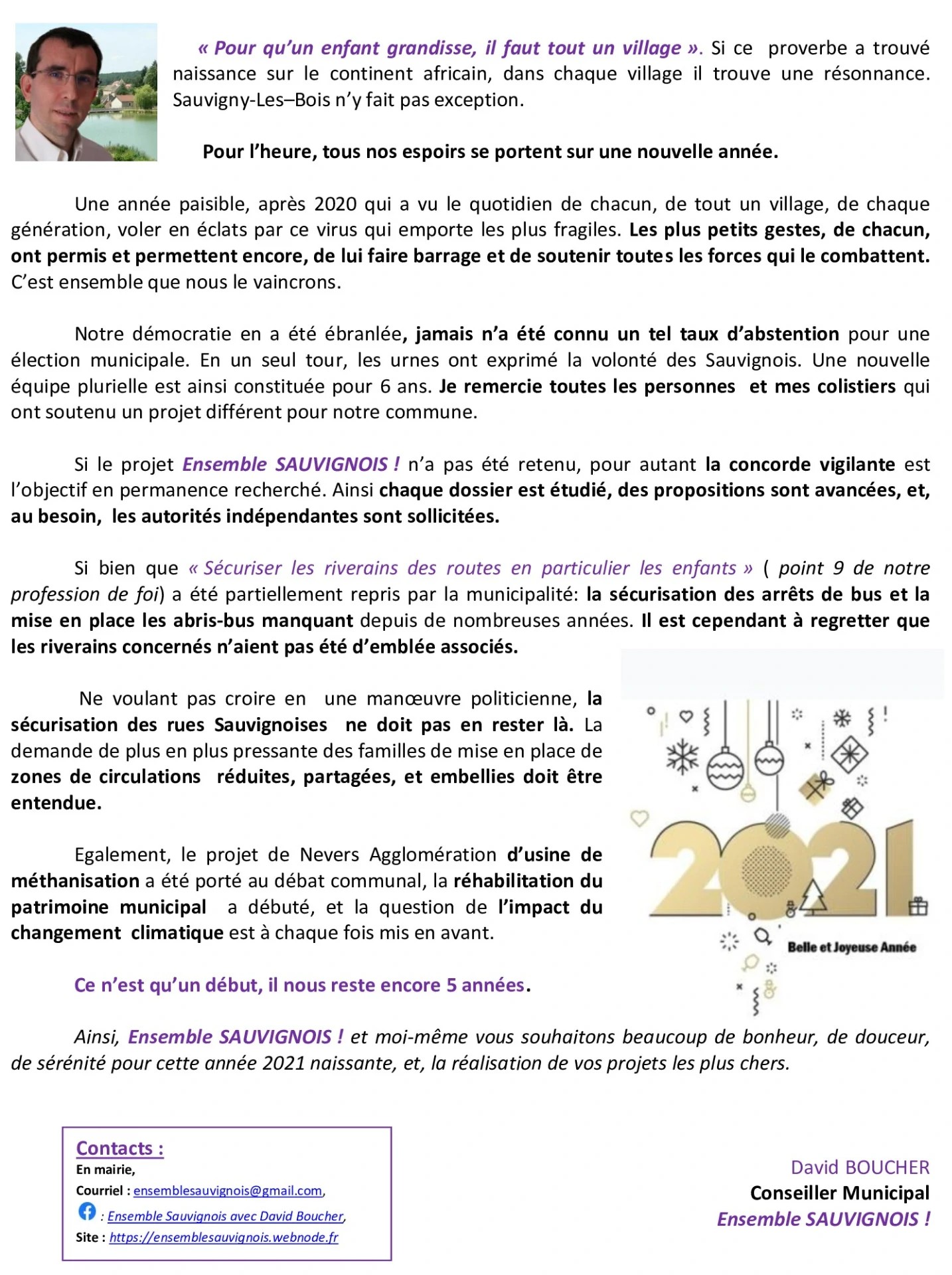 Pour l'heure, tous nos espoirs se portent sur une nouvelle année, 2022. La dynamique Ensemble SAUVIGNOIS ! sera accentuée pour porter encore vos contributions quotidiennes.