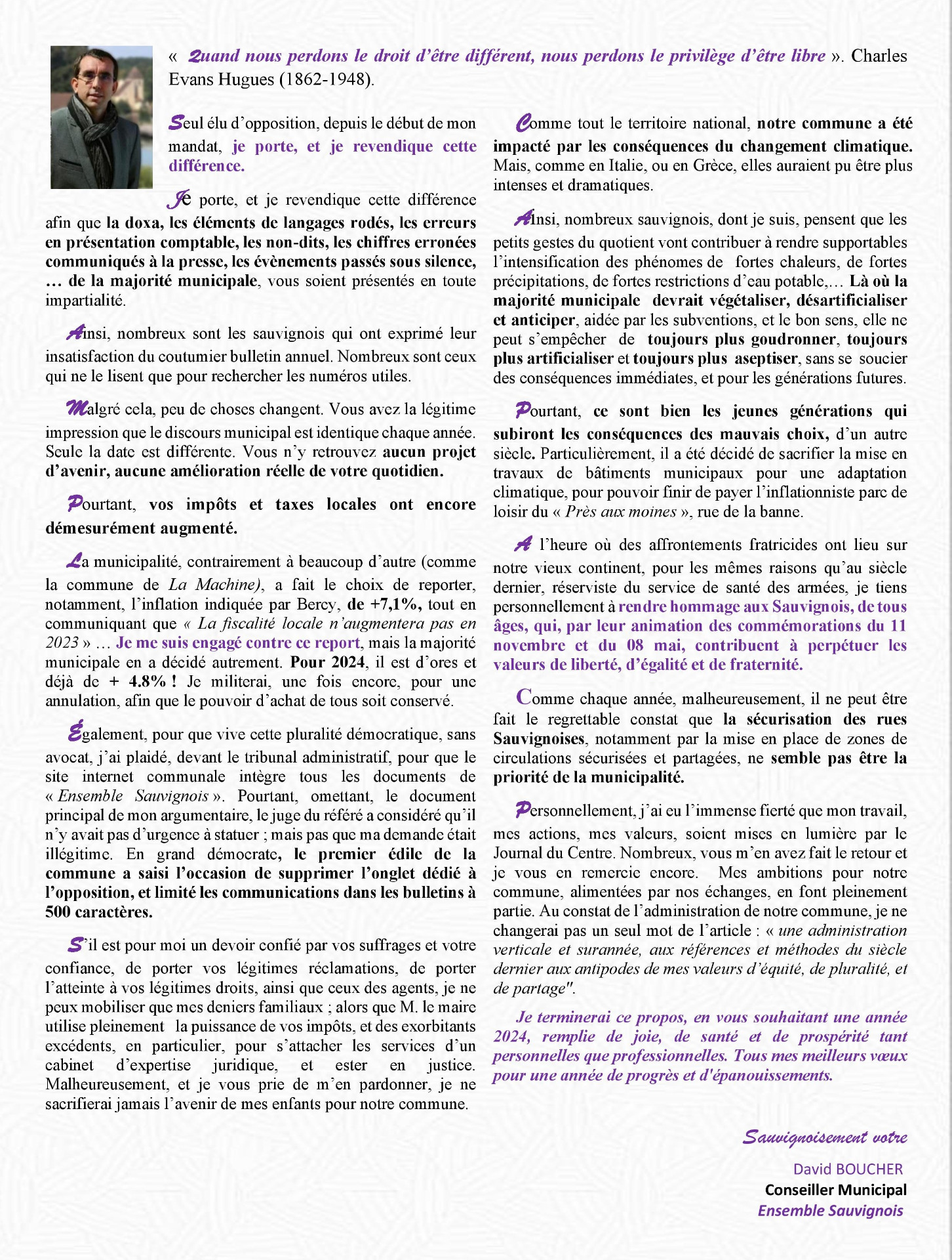 Nos VOEUX 2024 aux SAUVIGNOIS