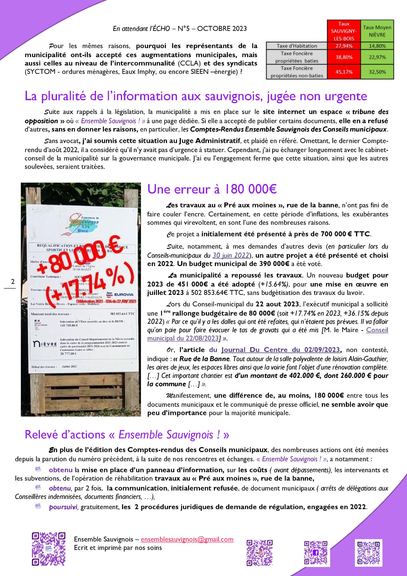 Être un élu, vous représenter, et vous informer, loyalement, ne s'arrête pas aux élections ! C'est pourquoi, nous continuons ardemment notre rôle de représentation. Au constat de ce qui se déroule au sein même de la liste principale « Vers une nouvelle réussite », et de la liste alliée « Réunis pour Sauvigny »